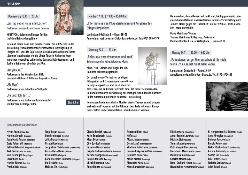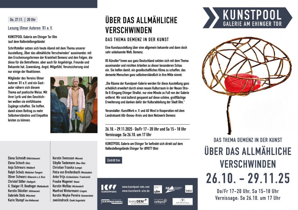 Vom 26.10.2025 bis 29.11.2025 nehme ich mit mehreren Arbeiten an der Ausstellung „Über das allmähliche Verschwinden bei „Kunstpool – Galerie am Ehinger Tor“ teil.